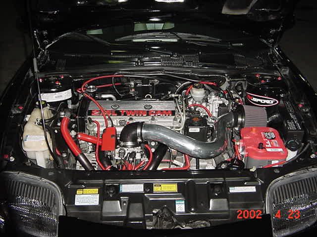Email: eternal911@hotmail.com Website: http://www.geocities.com/nightwing9112000/ Engine: RK Sport Cold Air Intake RK Sport Upper Engine Mount Red Line Water Wetter Custom paint red/black Red wire looms Dual Magnaflow exhaust 2.25 piping Part # 11235 Reactive oval polished tips Suspension/Wheels/Brakes: Focal F5 17x7 Part #165-7718S 215/40/17 Pirelli P7000SS Pontiac Logo Valve Stem Caps Cross Drilled & Slotted Rotor Semi-Metallic Brake Pads Eibach Pro Springs for a 2.5” drop OEM Strut tower brace Interior: Black & Silver Custom Leather Seats Black & Silver Doors Dashboard & Vents Streetforce Black & Silver Floormats Streetforce and Pontiac Seatbelt Pads Autometer Pro Shift light with red lens Autometer 2-1/16" Vacuum "Phantom" series gauge Autometer 2-1/16" Air/Fuel "Phantom" series gauge Autometer chrome cups Autogauge 1.5" water temperature gauge Autogauge 1.5" oil pressure gauge Ignited Red Starter Button Red lighted toggle switches for fog lights (2) Custom lighted red Pontiac logo center gauge Red interior lights & Climate knobs Konec shift knob Racing pedals Leather wrapped steering wheel and emergency brake Black vynal covered trunk Alarm system Gothic alarm light Extinguishers (1 cockpit/ 1 trunk) Exterior: RK Sport Ram Air Hood RK Sport Streetfire body kit RK Sport Streetfighter Spoiler Custom Black Two Seater Tonneau Cover Toucan fog lights RB 500 (4) GTS Headlight covers “Feel the Burn” and Pontiac logo decal Street Force Windshield decal Wheels Direct decal Eibach decal Magnaflow decal JCO decal Custom trim Clear Front Turn Signals Audio: Clarion VRX-610 6.5" screen Playstation 2 Alpine STP-4626 4x6 2way 100 watt Componant 6x9 3way Alpine 150 watt Optima Red Top Battery Miscellaneous: JCO J-Body Bash 2K 1995-2000 Semi-Modified Winner J2K J-Body Bash Best of Show Pontiac Canadian Import Nationals CIN Hottest American Sub-Compact JCO 2000 Show & Shine Custom Catagory 2nd Place Winner JBO 2001 Bash 1st Place Mild GM Shine and Shine 1st Place Pontiac Canadian Autotech Best Performance Display Team Streetforce 3rd Place Best Interior Noyz Boyz 2002 Show & Shine